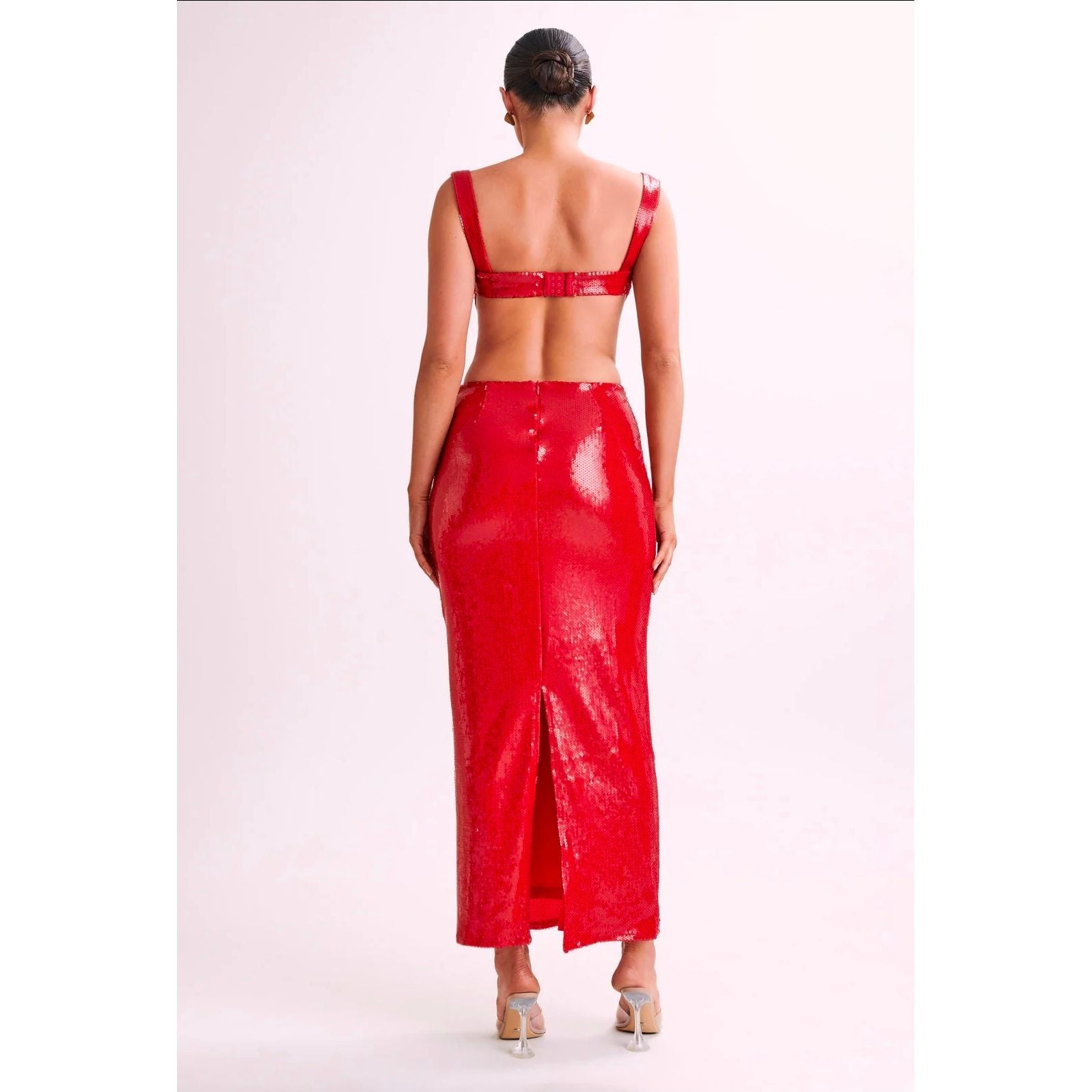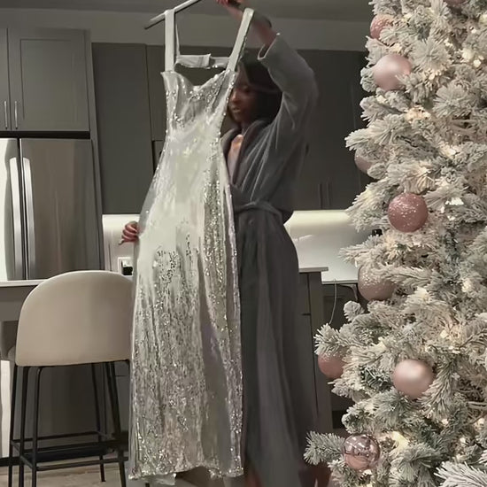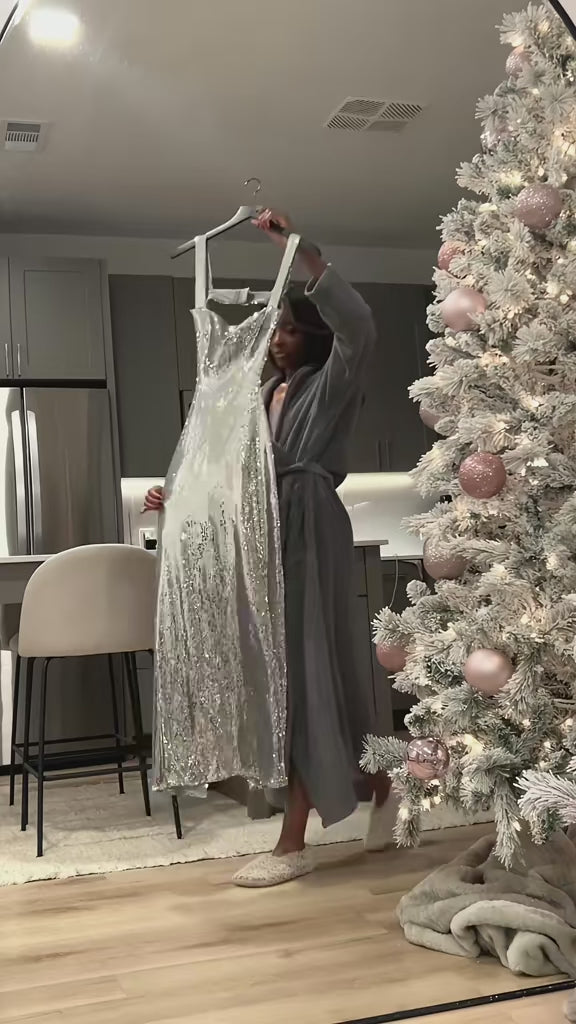 A silky-flowing maxi with a chic square neckline and a daring open back — made to highlight every curve and steal every glance.