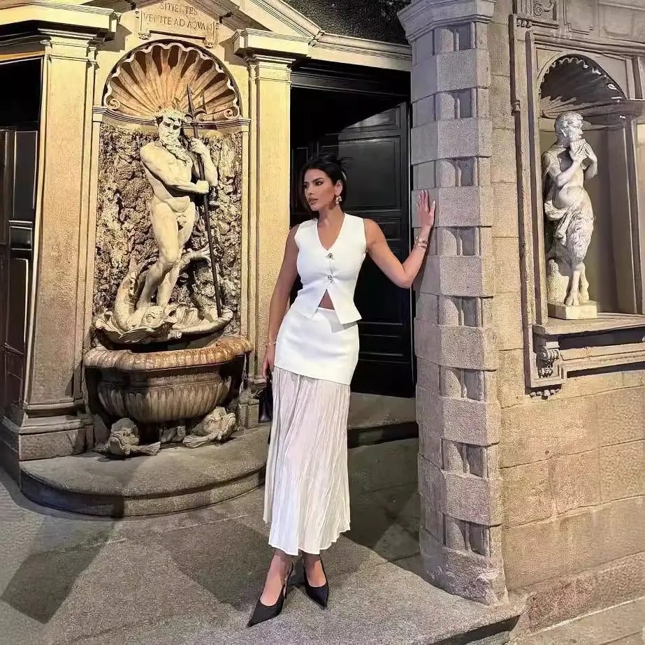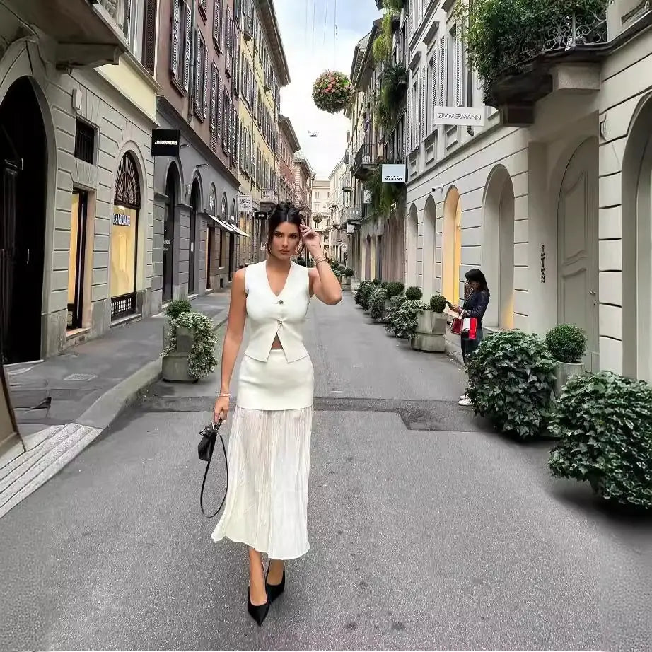 Women's Knitted Vest & Pleated Skirt Set