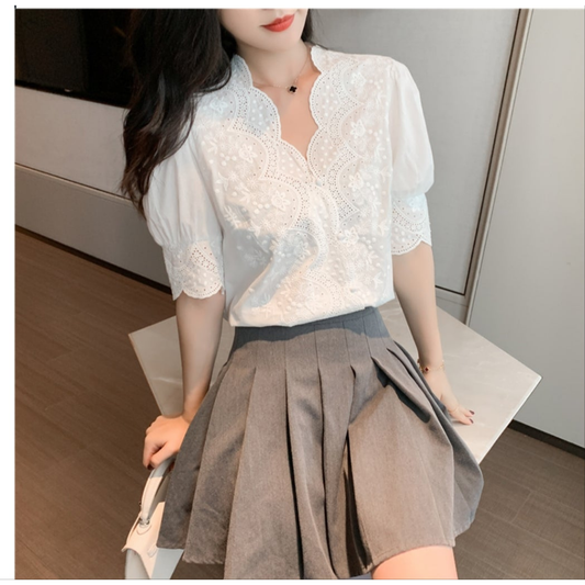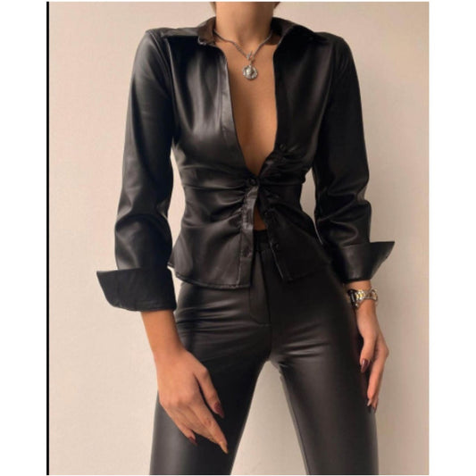 WOLFF Leather Patchwork Blouse with Long Sleeves (One Piece)