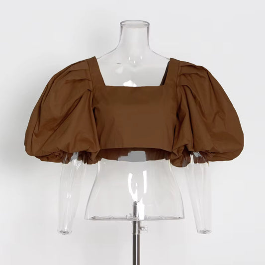 Autumn Fashion Square Collar Bubble Sleeve Tops for Women