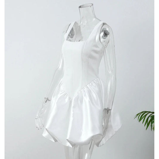 Saphira Dress - Sexy White Satin Backless Pleite Party Dress
