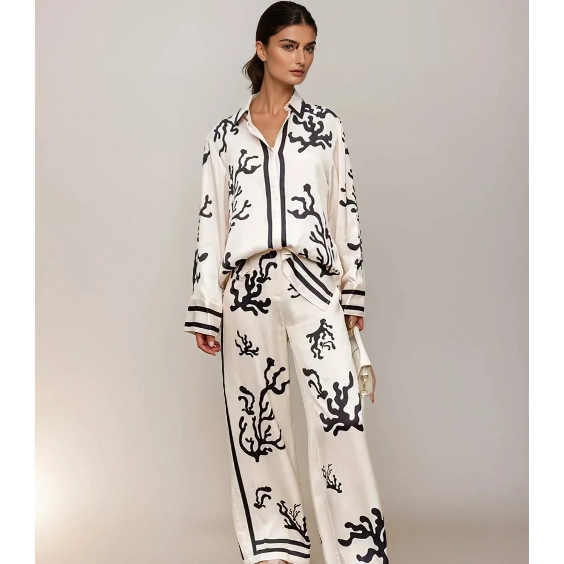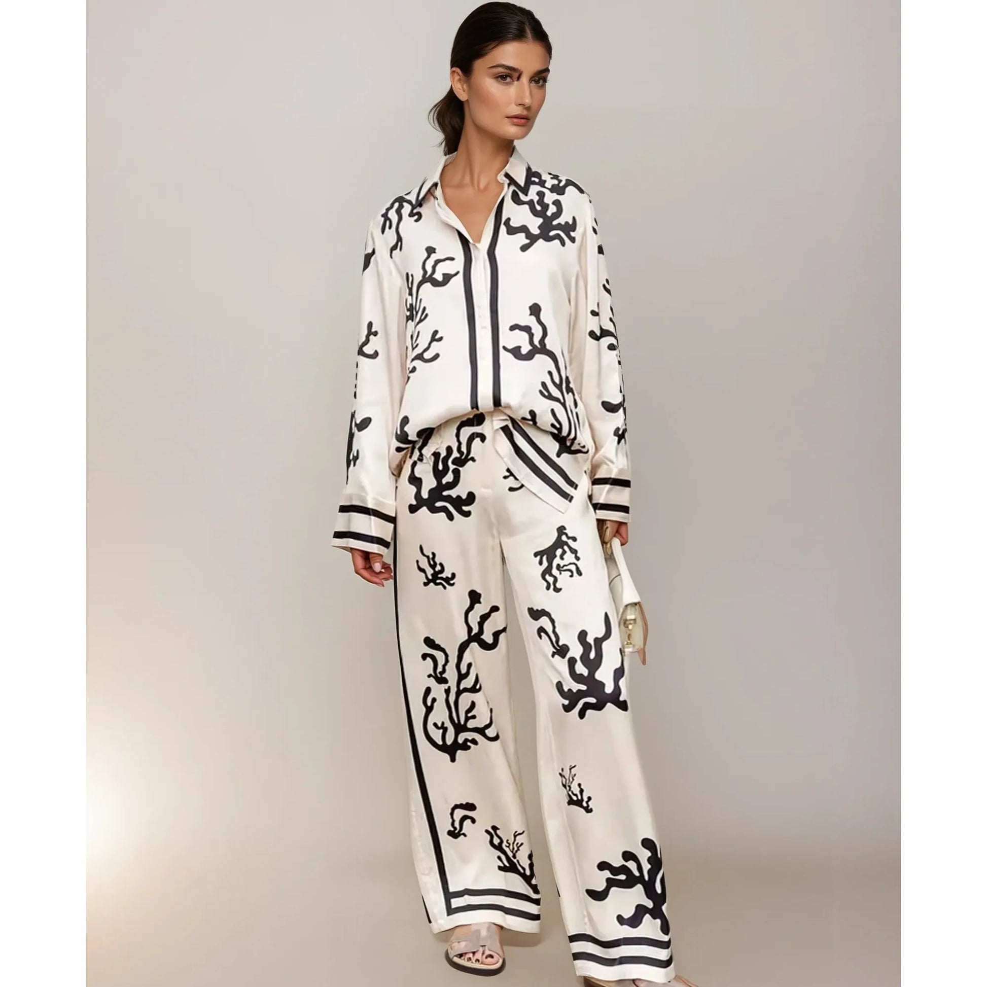 Designed in soft-touch rayon blend, this set brings ease and elegance to daily dressing. The lapel blouse flows effortlessly, while the tailored pants frame the figure. Minimalist yet striking, it’s a wardrobe essential for timeless chic.