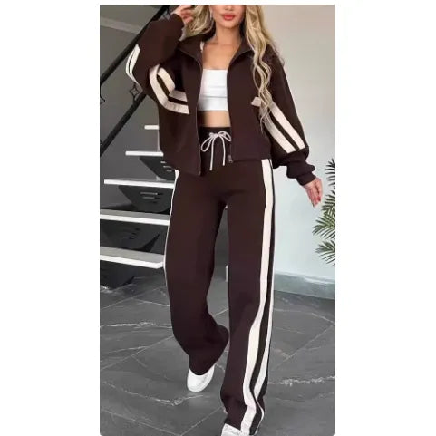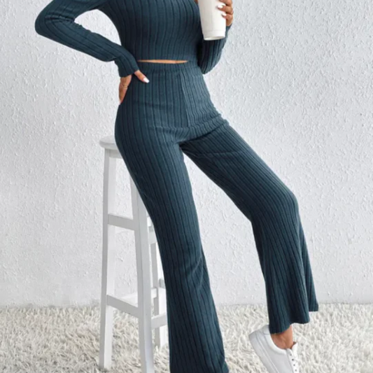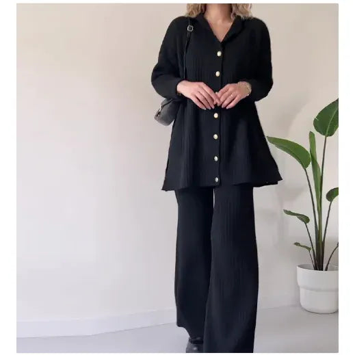 Vanessa Color Knitted Long Sleeve Turtleneck and Wide-Leg High-Waist Trousers Suit for Girls"