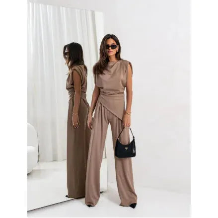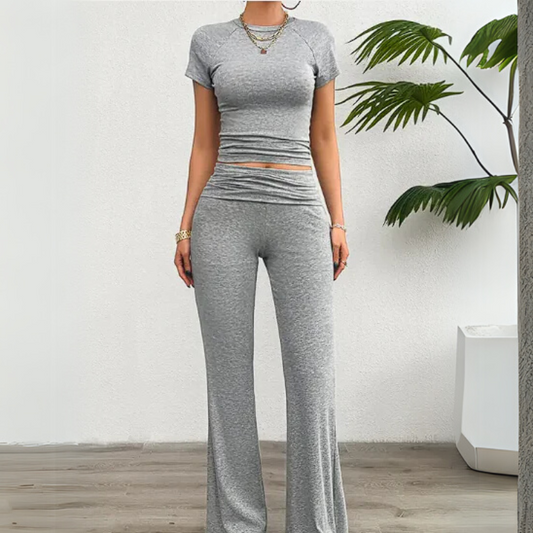 "Chic Solid Color Short Sleeve Trousers Suit"