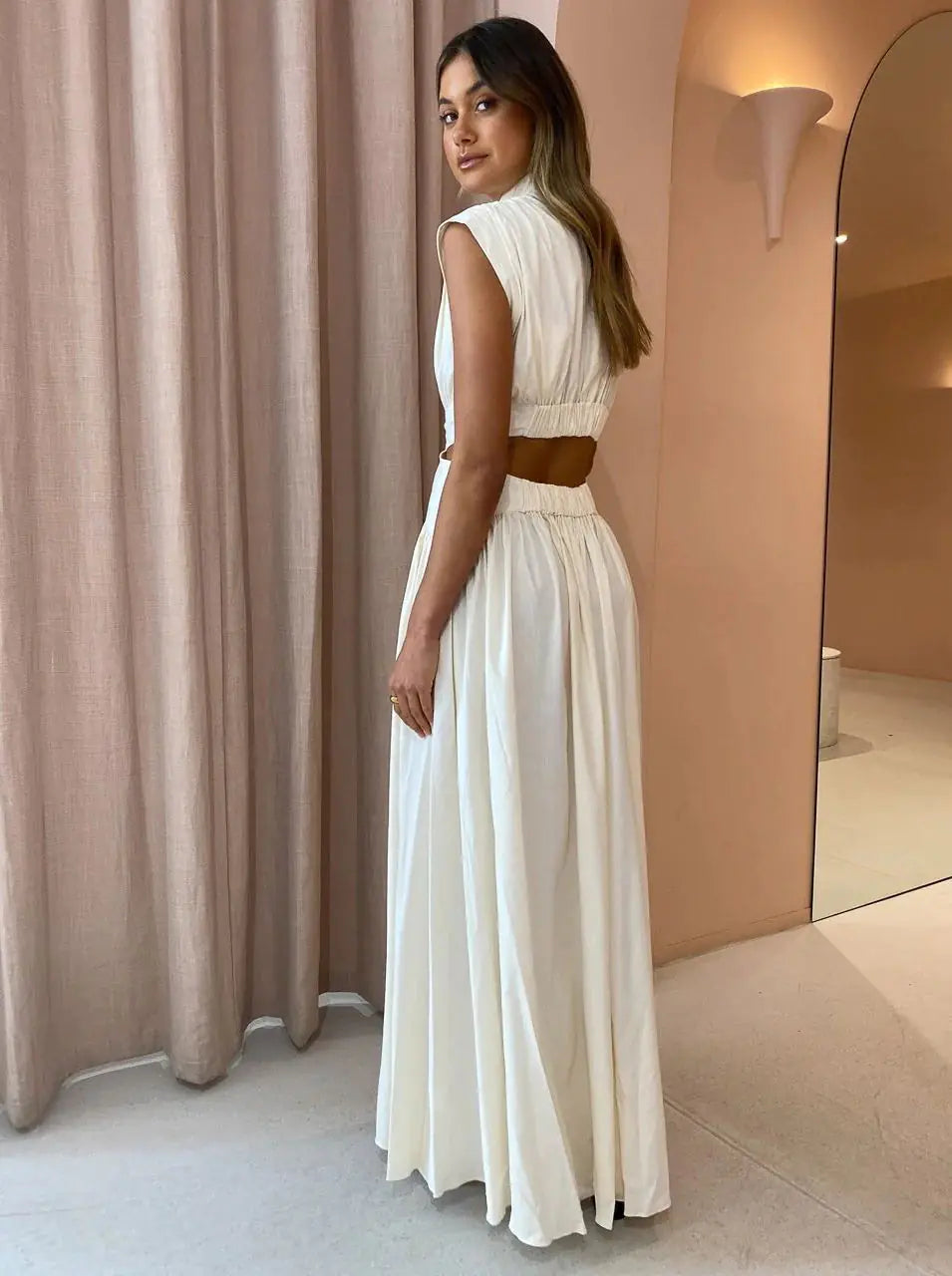 Calista – Vacation-Inspired Cut-Out Ruffle Dress | Effortlessly Elegant Goddess Style